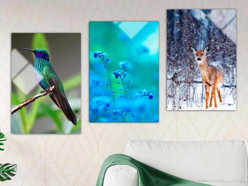 HD Metal komt prachtig tot zijn recht tegen een egale muur. Tip: schilder de muur in een tint die aansluit bij de hoofdkleur van de foto voor een nog sterker effect. Ook ledverlichting achter het paneel is een bijzondere toevoeging, vooral bij lichte muren. Het geeft extra diepte en laat de kleuren stralen.