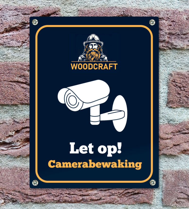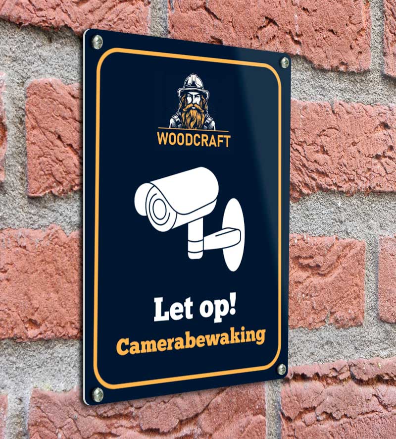 Bewakingscamera bord met eigen logo. Ontwerp direct online in eigen kleur en tekst.
