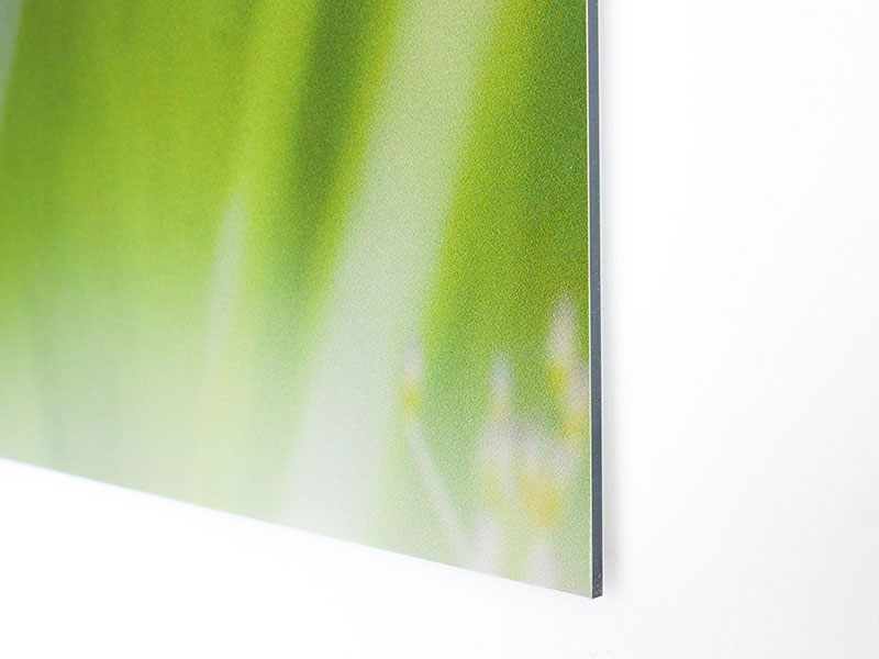 Standaard wordt Aluminium Dibond voorzien van een witte ondergrond. Wit kan namelijk niet geprint worden, daarom zorgt deze laag voor realistische en heldere kleuren.