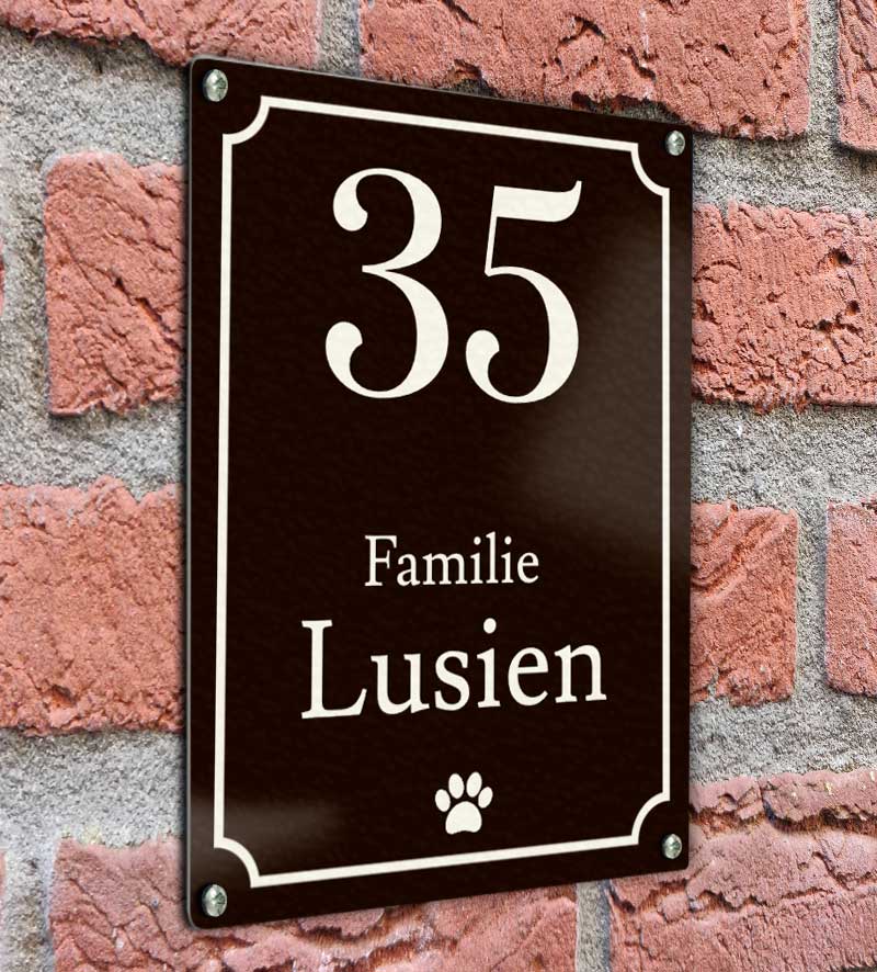 Online personaliseren met huisnummer, familienaam en illustratie (zoals een pootafdruk)