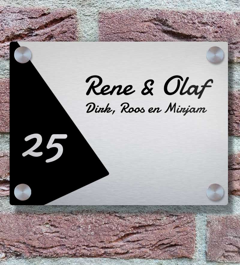 Een RVS naambordje kan je zelf online personaliseren met tekst en huisnummer. Er is keuze uit veel verschillende soorten ontwerpen RVS naambordjes. Bekijk alle ontwerpen van RVS naambordjes.