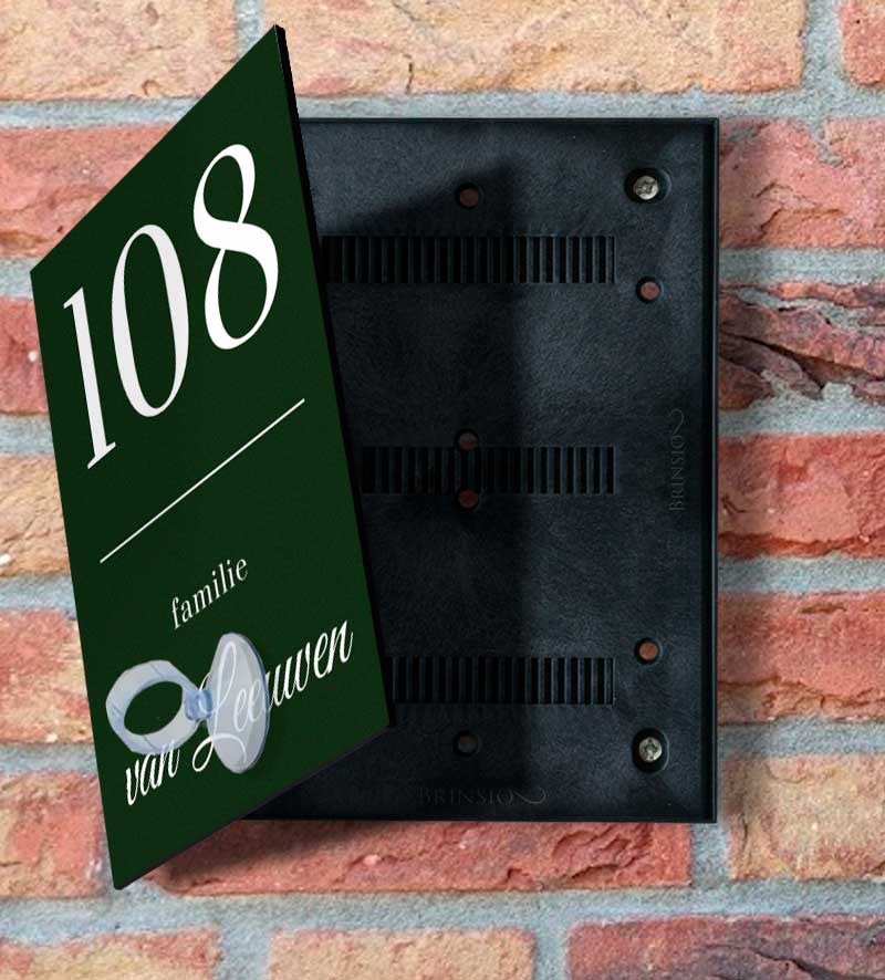 Verwisselbaar donkergroen naambordje