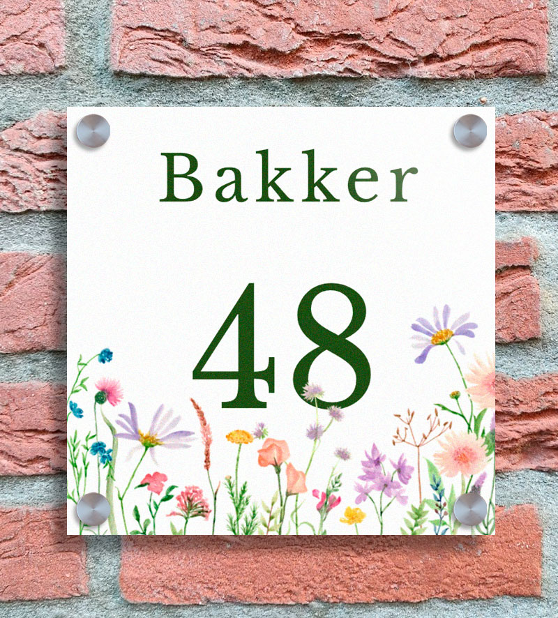Vierkant naambordje met bloemenrand – landelijk en persoonlijk