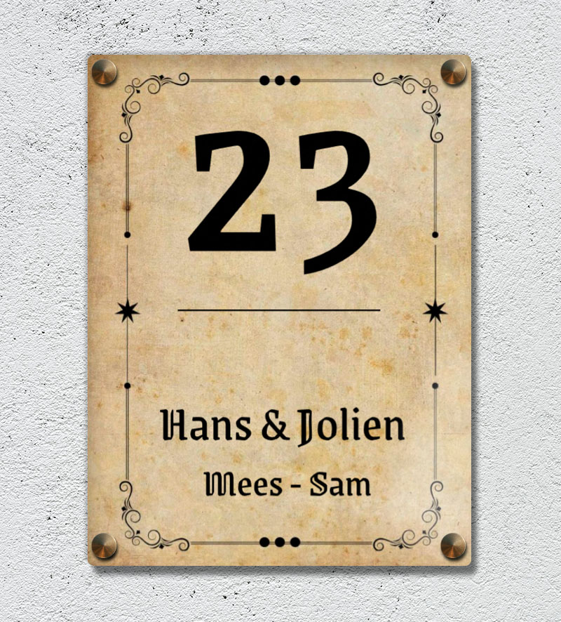 Niet het ontwerp vintage naambordje wat je zoekt? Bekijk al onze vintage naambordjes of bekijk onze gehele collectie van voordeur naamborden.