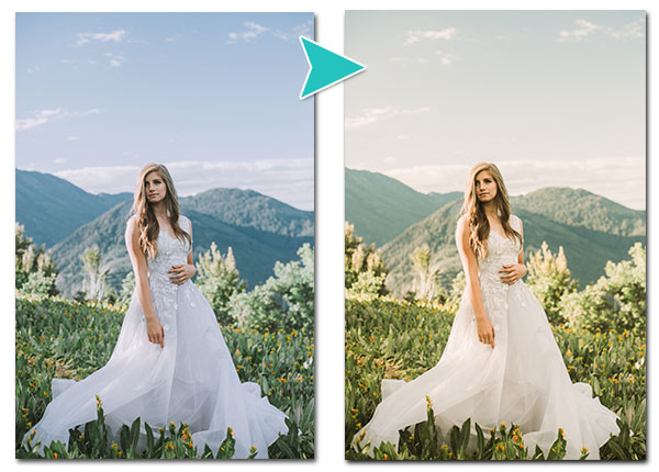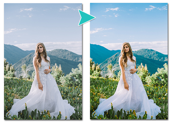 Bij het nabewerken van de foto worden de kleuren verzadigd. Hierdoor ogen de foto’s frisser en vrolijker. Een blauwe lucht wordt nog blauwer en je rode Ferrari ? is nog meer rood. Deze style van nabewerking wordt vaak erg gewaardeerd bij bruiloftsfoto’s. Daarnaast zie je ook vaak dat de belichting wordt aangepast. De foto wordt in zijn geheel iets lichter. Hierdoor gaat je bruiloftsjurk nog meer shinen en zijn je tanden perfect mooi wit.